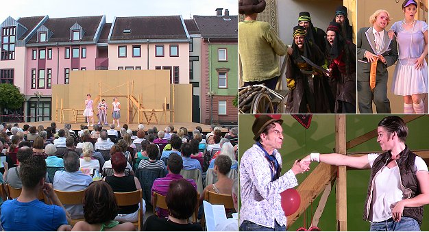 1001 Nacht und Shakespeare auf dem Leopoldsplatz (Fotos: Hubert Richter / Claudia Richter)(hr) Populäres gab es von der Badischen Landesbühne am Freitag beim traditionellen Open-Air-Theater auf dem Leopoldsplatz in Eberbach.