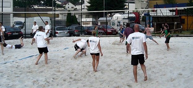 Die Mannschaften, bestehend aus drei bis sechs Spielern und Spielerinnen, pritschten, baggerten, hechteten und brachten akrobatische Höchstleistungen, um in ihren Vorrundengruppen ihr Bestes zu geben. In zwei Gruppen wurde jeder gegen jeden gespielt und anschließend im Überkreuzvergleich die beiden besten Teams für das Endspiel ermittelt. So sah man mitreißende Rettungsaktionen, starke Angriffe und unbeschreibliches Abwehrverhalten sowie originelle Outfits und Auftritte der einzelnen Teams.
