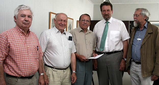 Das äußere Zeichen für die Realisierung dieser Maßnahme setzte die Übergabe des Förderbescheides über rund 69.000 Euro durch Dr. Bernhard Frassiné vom Amt für den ländlichen Raum (ALR, Reichelsheim) an Beerfeldens Ersten Stadtrat Günter Hufer. Der ALR-Mitarbeiter, unter anderem für den Förderschwerpunkt Gammelsbach federführend, überreichte das Dokument im Büro von Landrat Dietrich Kübler, mit dem sich auch der Gammmelsbacher Ortsvorsteher Hermann Gerbig und der Sprecher des Arbeitskreises Dorferneuerung Willi Naas über den Zuschuss freuten.