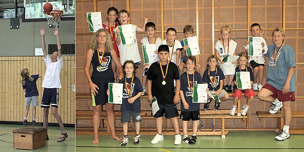 In vereinsgemischten Gruppen durchliefen die Kinder verschiedene Stationen, an denen überwiegend basketballspezifische Ballfertigkeiten geübt wurden. In den sich anschließenden Matches (vier gegen vier) der sechs angetretenden Teams aus Leimen, Weinheim und Eberbach konnten die beiden Mannschaften des TV die Mehrzahl der Spiele für sich entscheiden. Mit kämpferischen Einsatz und gutem Teamgeist gelangen den Teams einige Treffer in die Standkörbe. Ein besonderes Lob hatten sich Tim Völker und Nils Stach verdient, die sich spontan bereit erklärten, gemeinsam mit drei Leimener Spielern ein "Mixed-Team" zu bilden, um so den Ausfall der zunächst gemeldeten Kirchheimer Mannschaft zu kompensieren. Auch in diesem Team konnten Erfolge gefeiert werden.