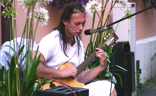 Viel Trubel am Sommerabend in der Innenstadt Roland Beigel sang und spielte in der Kellereistraße. (Foto: Hubert Richter)Mehr Bilder (Klicken zum Vergrößern):