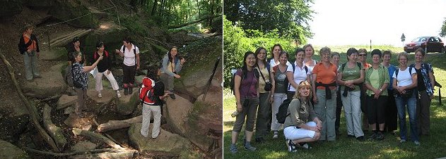 Unter der Leitung ihrer Dozentin Dr. Friederike Werling lernten die Frauen nun bei der Wanderung auf dem Margarethenschlucht-Lehrpfad die Entstehungsgeschichte des Buntsandsteins kennen und erfuhren Interessantes über die Geologie des Odenwalds und die tektonischen Kräfte, die die Schlucht einst formten. Der Bach, der zur Entstehung der Schlucht führte, heißt Flursbach und stürzt sich von der Hochfläche oberhalb von Neckargerach hinab zum Neckar.