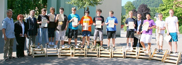 Zum Abschluss in der vergangenen Woche erhielten die Teilnehmer von Fabian Fahr ein Zertifikat über den erfolgreichen Abschluss eines "Basiskurses zur handwerklichen Ausarbeitung von Holztreppen". Rektorin Regine Sattler-Streitberg von der Realschule und Schulleiter Martin Staniczek von der Theodor-Frey-Schule beglückwünschten die Schüler und versprachen, die erfolgreiche Kooperation zwischen den beiden Schulen in der Zukunft noch weiter auszubauen.