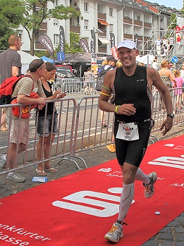Der Schmerz geht, der Stolz bleibt Trotz körperlicher Anstrengung hat Timo Lind ein Lächeln im Gesicht. (Foto: privat)(bro) (sh/drlg)Nicht nur die Weltspitze, wie z.B. der Eberbacher Timo Bracht, traf sich am Sonntag, 4. Juli, in Frankfurt am Main zum Ironman, sondern auch Amateursportler aus Eberbach haben sich dieser Herausforderung gestellt.