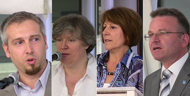 Das Lebensrad dreht sich im Schafwiesenweg Redebeiträge bei der heutigen Einweihungsfeier kamen von Architekt Guido Körkel, Heimleiterin Doris Popp, der Landtagsabgeordneten Elke Brunnemer und Bürgermeister Bernhard Martin. (Foto: Hubert Richter)Mehr Bilder (Klicken zum Vergrößern):