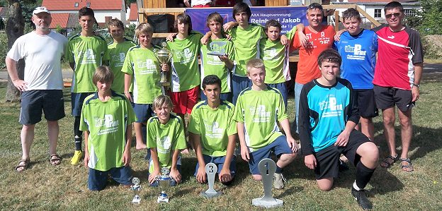 Im Halbfinale trafen dann beide Teams aufeinander, wobei Team eins mit 3:0 diese Partie klar gewinnen konnte. Das kleine Finale gegen den SC Oberschefflenz wurde dann wegen der brütenden Hitze in einem spannenden Elfmeterschießen mit 8:7 für Team zwei entschieden. Im Finale traf danach Team eins erneut auf den TSV Sulzbach. Mit einer starken spielerischen Leistung konnte man diesen Gegner nach einem zwischenzeitlichen Rückstand verdient mit 3:2 besiegen und somit den Turniersieg verbuchen.