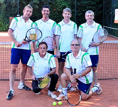 Herren 40/2 sind in die zweite Bezirksklasse aufgestiegen Die Mannschaft des letzten Spieltags : Jochen Sittig, Armin Kapell, Rainer Bussemer, Peter Wessely (v. hinten li.), Joachim Mandel und Manfred Lenz (vorne). Die Mannschaft wurde an anderen Spieltagen durch: Thomas Schlachter, Jörg Mechler, Henry Grüneberg, Hans Jürgen Fies, Ralf Mandel und Holger Lenz ergänzt. (Foto: privat)
