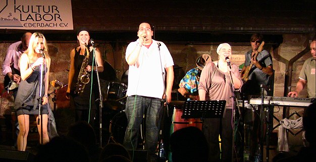 Funk und Soul zum Auftakt (Foto: Hubert Richter)(hr) Mit einer heißen Funk- und Soulparty startete das Kulturlabor Eberbach am Freitag, 16. Juli, seine diesjährige Open-Air-Reihe im Innenhof am Pulverturm.