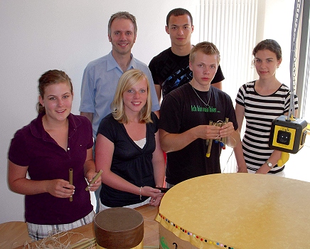 Entgegen allen Erwartungen gestaltete sich das Projekt schwieriger als erwartet: Nun mussten sich die Schülerinnen und Schüler mit den Eigenschaften des Tonsystems auseinandersetzen und diese verinnerlichen. Nach dem aufwendigen Stimmen der Bambusröhrchen kam es zu den ersten Komplikationen. Beim Abdichten der Röhrchen fehlte das geeignete Material, und man musste häufig improvisieren. Viel Spaß hingegen bereitete das phantasievolle Bemalen der Trommel. Laut ging es beim Sägen der einzelnen Gitarrenteile zu. Nach fünf Doppelstunden konnten die Ergebnisse erfolgreich ausprobiert und stolz präsentiert werden.