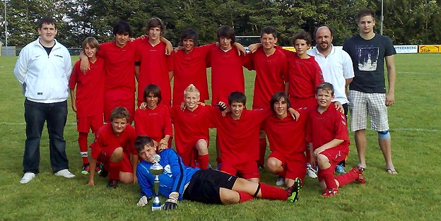 mit dem Siegerpokal. (Foto: privat)(bro) (ml)Zu einem Turnier traf sich die SG Hirschhorn/SV Eberbach/ SV Moosbrunn am 24. Juli in Rothenberg. Gegner bei diesem Turnier waren die JSG Rothenberg und die TSG Steinbach. Es musste gegen jede Mannschaft zweimal gespielt werden.