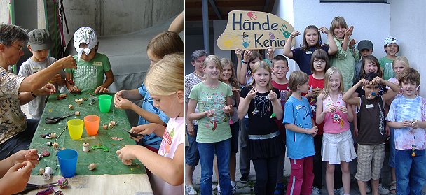 Ferienspaß und Hilfe für Kinder in Afrika (Fotos: privat)(hr) (ur) Beim Ferienspaß des Vereins "Hände für Kenia" machten sich 15 Kinder begeistert an das Gestalten ihrer Fische aus Fimomodelliermasse.