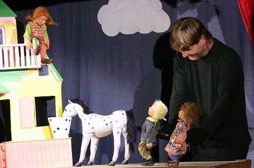 Brigitte und Andreas Blersch vom Neu-Ulmer Figurentheater bauten am Nachmittag die Villa Kunterbunt im Ratssaal auf und zeigten gleich drei Episoden mit Pippi Langstrumpf nach dem Buch von Astrid Lindgren.