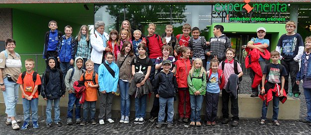 Nach dem Treffen um 9 Uhr am Bahnhof gab es zunächst Lunchpakete für die 27 Kinder. Los ging es mit dem Zug nach Heilbronn. Nach einem Fußmarsch zur Experimenta gab es dort zuerst eine kleine Einführung. Durch vier Stockwerke, die in die Bereiche E-Werk, Werkstatt, Netzwerk und Spielwerk eingeteilt waren, führte die Experimenta. Zwischendurch traf man sich zu einer Ess- und Trinkpause.