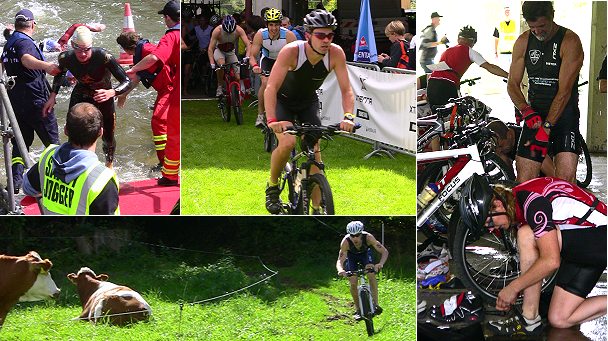 Einen Tag vor dem Wettkampf stand nach dem starken Unwetter der Start noch in den Sternen. Aber rechtzeitig waren die Strecken wieder frei, allerdings musste die Schwimmstrecke auf dem Neckar wegen der starken Strömung aufgrund Hochwassers auf 900 Meter verkürzt werden. Beim Startschuss auf dem Fluss waren auch Landrat Matthias Wilkes und Hirschhorns Bürgermeisterin Ute Stenger dabei.