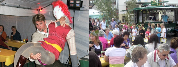 Mit den Begrüßungsworten von Volker Schäfer von der Pfungstädter Brauerei konnte nun der Fassbieranstich erfolgen. Die Kerwegäste erfreuten sich anschließend an kulinarischen Köstlichkeiten wie dem "Freiensteiner Kochkässchnitzel" und leckeren Cocktails. Kerwevadder Frank Leutz, der im Vorfeld den Anstoß zu dieser gemeinsamen Dorfkerwe gab, warnte in seiner Kerweredd` alle Dorfbewohner eindringlich im folgenden Jahr vor eventuellen Fehltritten, da man sich ansonsten im nächsten Jahr auf dem Sünderbänkchen wiederfinden könne.