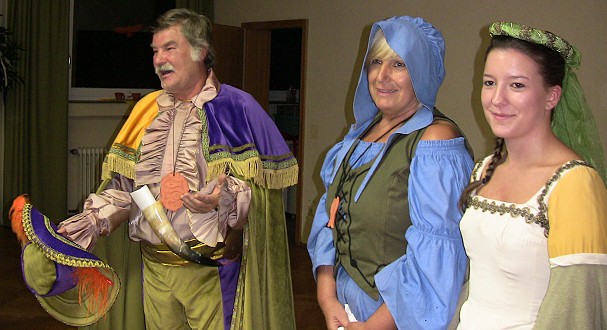 Ortsjubiläum mit historischem Treiben Jutta Storck und Elena Schnitzhofer (v.l.) überreichten dem Ortsvorsteher einen tönernen Verdienstorden. (Foto: Claudia Richter)Mehr Bilder (Klicken zum Vergrößern):