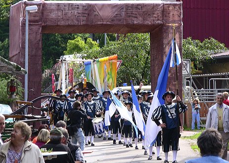 Ortsjubiläum mit historischem Treiben Einzug des Fanfarenzugs in der Ersheimer Straße. (Foto: Hubert Richter)Mehr Bilder (Klicken zum Vergrößern):