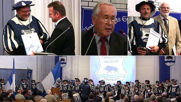 Bürgermeister Bernhard Martin überbrachte die Glückwünsche und eine Jubiläumsgabe der Stadt. Er betonte die Bedeutung des Fanfarenzugs als musikalischer Botschafter Eberbachs, der die blau-weißen Stadtfarben seit einem halben Jahrhundert und in knapp 1.000 Auftritten "in die Welt hinaus" trage.