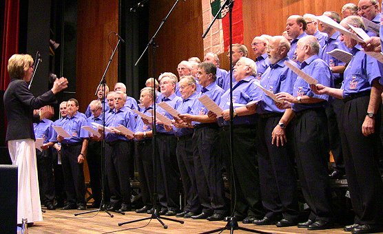 Männergesang jenseits der üblichen Chormusik boten auch die Eberbacher "Rocky Harmonists" mit einem gekonnt dargebotenen A-cappella-Programm, das überwiegend aus Musik der kultigen "Wise Guys" bestand. Dazwischen brachten die "Blauen Jungs vom Elbestrand" mit Gassenhauern wie "Seemann lass' das Träumen" oder "Auf der Reeperbahn..." den Saal zum Schunkeln und Mitsingen. Das maritime Quintett besteht aus Sängern der "Liedertafel".