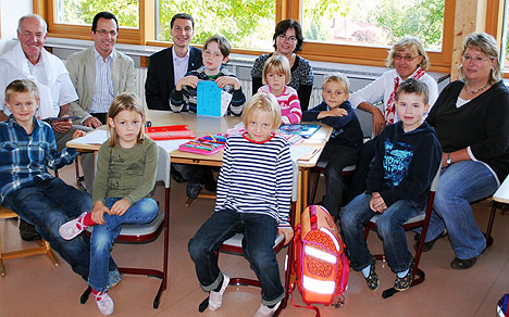Gute interkommunale Zusammenarbeit Unser Bild zeigt von links: Bürgermeister Peter Kirchesch, Rektor Kurt Frey, Bürgermeister Norman Link, die ehrenamtlichen Helferinnen Ute Heckmann, Margareta Spiller sowie die Leiterin der flexiblen Nachmittagsbetreuung Angelika Kuntz mit den Kindern der Nachmittagsbetreuung. (Foto: GVN)(hof) (gvn) Seit dem 20. September 2010 besteht für die Neckargeracher und Zwingenberger Grundschüler in der Grundschule in Guttenbach die Möglichkeit, als Ergänzung zu den Unterrichtsblöcken, die flexible Nachmittagsbetreuung zu besuchen. Die Betreuung wird montags bis freitags in der Zeit von 12:00 Uhr bis 14:30 Uhr angeboten. Die Bürgermeister Peter Kirchesch (Zwingenberg) und Norman Link (Neckargerach) sowie Rektor Kurt Frey statteten den Kindern mit ihrer hauptamtlichen Betreuerin Angelika Kuntz sowie den ehrenamtlichen Helferinnen Ute Heckmann und Margareta Spiller einen Besuch ab.