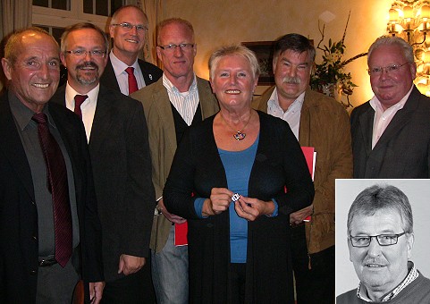 Manfred Wernz wechselt auf den Beisitzerposten V.l. Manfred Wernz, Thomas Funk, Lothar Binding, Günter Götz, Christa Wernz, Harald Rupp und Klaus Eiermann. Kleines Bild: der neue Vorsitzende Rolf Schieck. (Fotos: Hubert Richter / privat)(hr) Der Eberbacher Ortsverein der SPD steht unter neuer Führung. Gestern Abend gab der langjährige Vorsitzende Manfred Wernz in einer Mitgliederversammlung im Hotel "Karpfen" sein Amt ab.
