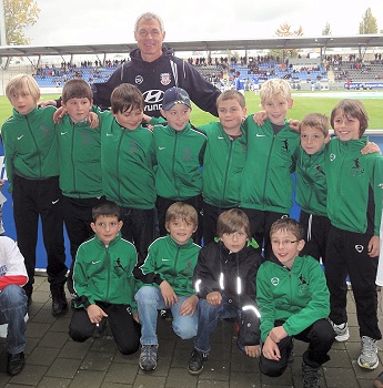 Nach Besichtigung der Katakomben, einer Ehrenrunde durch das Stadion und Probesitzen auf der Reservebank durften die jungen Fußballer unter dem Jubel der Zuschauer mit den Profis auf das Spielfeld. Natürlich ließ es sich Hans-Jürgen Boysen nicht nehmen, „seine Fußball-Schüler“ zu begrüßen und mit ihnen für ein Erinnerungsfoto zu posieren. Danach konnte das Hirschhorner Team hautnah ein spannendes Spiel von der Haupttribüne aus verfolgen.