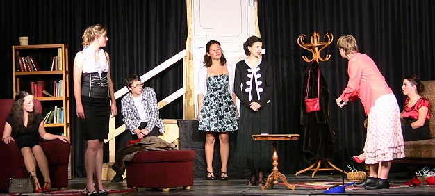 Fast acht Frauen und ein Todesfall (Foto: Claudia Richter)(cr) Mitglieder der Theater-AG des Hohenstaufen-Gymnasiums Eberbach zeigen in der kommenden Woche zwei Krimi-Aufführungen frei nach dem Stück "Acht Frauen" von Robert Thomas.