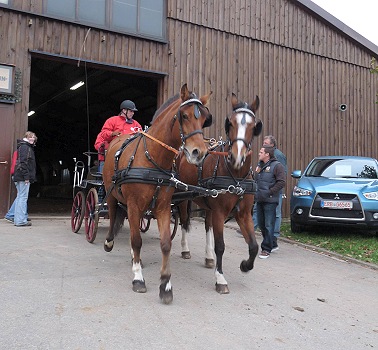 Die Stimmung in der Halle war bestens, oft wurden haarsträubende Wendemanöver oder Zeit gewinnende Galoppaden auf den Geraden mit Beifall und Gekreische bedacht, was den Blutdruck von Fahrern und Pferden weiter in die Höhe schnellen ließ. So gingen Adrenalinausstoß und sportliche Leistungen Hand in Hand. Da ausschließlich die Disziplin „Kombiniertes Hindernisfahren mit Geländehindernissen“ der Klasse A in vier Prüfungen mit je zwei Umläufen auf dem Plan standen, gab es Fahrspaß und Action pur während des gesamten Turniers, das um 17 Uhr begonnen hatte. Wilhelm Wörner hatte sich wieder einen interessanten Parcours ausgedacht, der sowohl Gespanne mit Großpferden als auch Ponys forderte, wobei zunächst die Zweispänner, dann die Einspänner an der Reihe waren und von Wilhelm Wörner und Wilhelm Tischer gerichtet wurden. Nora Wörz vom Michelshof betrieb die Meldestelle, die Beerfeldener Turnierleitung hatte Ludwig Schäfer inne. Der gastgebende Verein RFVO Beerfelden, welcher auch für das leibliche Wohl der Gäste sorgte, wurde durch Werner Riesinger und Heinz Ihrig vertreten. Die Fahrerwertung bei den Turnieren um den Mitsubishis Cup wird über drei Veranstaltungen gerechnet: Beerfelden am vergangenen Samstag, Fränkisch-Crumbach am 30. Oktober und als Finalstation Erbach am 6. November.