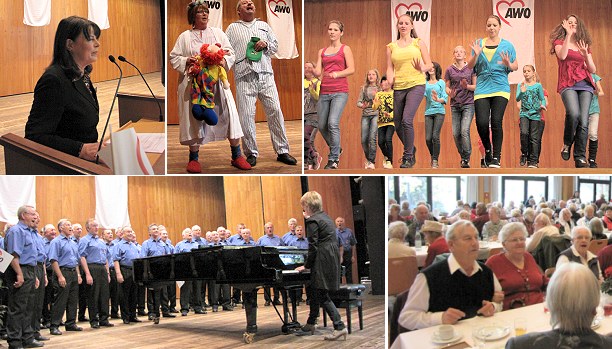 Bei ihrer Begrüßungsrede stellte die Vorsitzende des Ortsvereins, Barbara Krawczyk, die AWO als modernen Wohlfahrtsverband auf der Basis von Selbsthilfe und Solidarität vor. Mit bundesweit rund 15.000 Einrichtungen und Dienste in allen Bereichen der sozialen Arbeit und rund 180.000 Personen zählt die AWO zu den großen Wohlfahrtsverbänden. Dahinter stehen derzeit etwa 450.000 Mitglieder, die sich in Ortsvereinen organisieren.