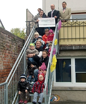 SpatzenNest verzeichnet einen Erlös von 3.800 Euro (Foto: privat)(bro) (en) Die baurechtlichen Vorgaben, dass zu der bereits vorhandenen Feuerschutztür noch drei weitere Türen eingebaut werden müssen und trotz vorhandenem zweiten Ausgang noch eine Fluchttreppe zu installieren ist, führten in der Kinderkrippe SpatzenNest zu einem „Ideenwettbewerb“. Das Team überlegte sich, wie man die anfallenden Kosten finanzieren könnte, da nach dem Kindertagesbetreuungsgesetz (KiTaG) zwar eine Beteiligung der Stadt an den Betriebskosten gesetzlich geregelt ist, jedoch nicht an den Investitionen.