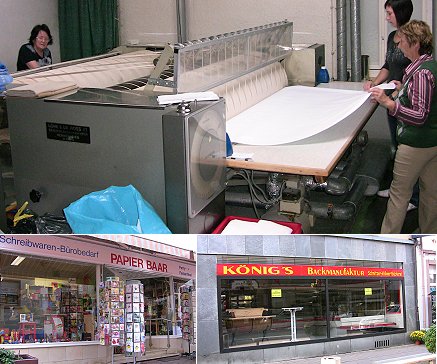 Geschäfte müssen schließen - Baustellen halten Kunden fern Bild oben: Einer der letzten Arbeitstage in der Wäscherei Faske. Unten v.l.: Papier-Baar hofft auf einen Nachfolger, das Schaufenster der Backmanufaktur ist leer. (Fotos: Claudia Richter)(cr) Im April dieses Jahres wurden die Ergebnisse des Entwicklungskonzeptes zur Stärkung der Innenstadt vorgestellt (wir berichteten). "Kein Papier für die Schublade" sollte das Gutachten werden, und mit seiner Hilfe sollten "kurzfristig schnelle Erfolge" erzielt werden, hieß es bei der Projekteinführung im September 2009. Aber in der Zwischenzeit ist die Situation des Einzelhandels in der Innenstadt noch viel schwieriger geworden. Der Gemeinderat wird morgen über das weitere Verfahren im Zusammenhang mit dem Konzept entscheiden.