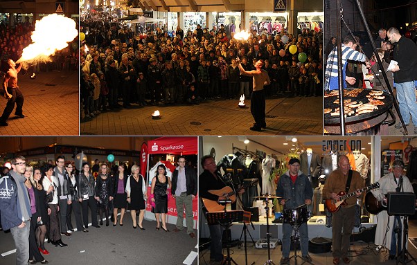Feuershows mit dem Beerfeldener Feuerkünstler "Jeremy", Modeschauen und Live Musik sowie vielfältige Bewirtung mit Speisen und Getränken rundeten die Angebote der Eberbacher Geschäfte ab, die bis 22 Uhr geöffnet hatten.