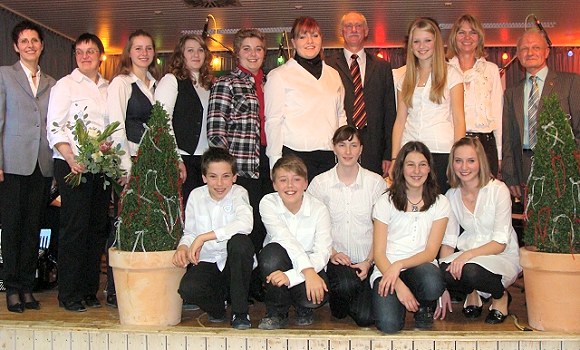Anschließend führte der Deutsche Harmonika Verband e.V. Ehrungen durch die Vorstände Ute Baranyai und Karl-Heinz Strohmaier durch. Eine Urkunde für fünf Jahre aktive Orchesterarbeit erhielten: Maximilian Schöner, Lasse Rüster, Lea Zimmermann, Julia Boch, Fabienne Völker, Isabell Göhrig, Jana Roßney und Lisa Linnebach.