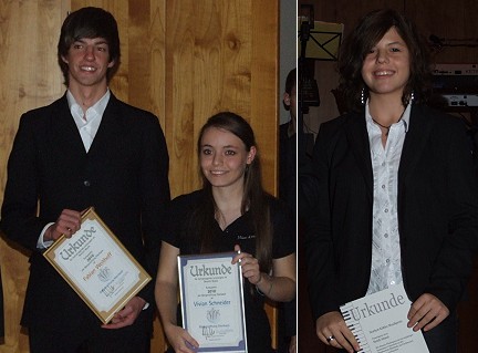 Norbert Köhler Musikpreis und Kulturpreis wurden vergeben V.l. Fabian Weithoff, Vivian Schneider, Sarah Abassi (Fotos: privat)(dl) Junge Nachwuchstalente wurden im festlichem Rahmen während des Benefizballs der Bürgerstiftung am Samstag, 6. November, mit Preisen ausgezeichnet. Die im Rahmen der Bürgerstiftung Eberbach geführte Stiftung, Norbert Köhler Musikpreis, verlieh in diesem Jahr zum neunten Mal diesen Preis.