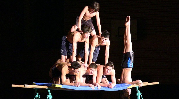 Als "Turnkinder aus aller Welt" machten die "Zwergen-", Kleindkinder- und die Eltern-Kind-Gruppen den Anfang. Nach dem Badminton-Nachwuchs und der ersten Jazztanzgruppe "Dancing Flames" stellten die Jungs und Mädchen des Allgemeinen Turnens die vier Elemente Feuer, Erde, Luft und Wasser turnerisch dar. Fernöstlich ging es bei den Judokas zu, die "Burning Waves" tanzten, und unter dem Motto "Turnus maskulinum est" zeigten die Turner der Fördergruppe, dass sie ihre Geräte wie Barren und Reck erheblich besser beherrschen als die lateinische Sprache.