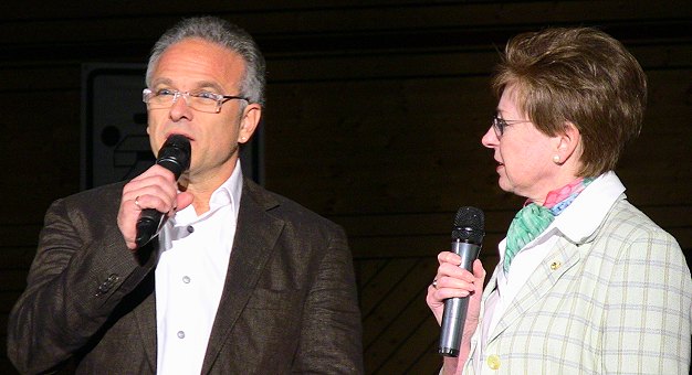 250 Akteure gaben wieder ihr Bestes Das Moderatorenduo Toni Dausch und Gisela Fleck vor dem Endspurt der Show. (Foto: Hubert Richter)Mehr Bilder (Klicken zum Vergrößern):