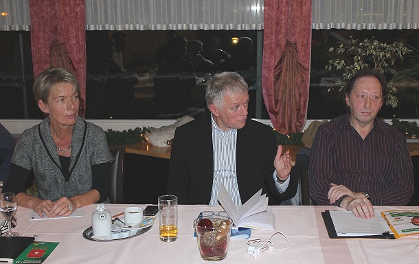 Bevor Kuhn sich dem eigentlichen Thema zuwandte erlaubte er sich einige Bemerkungen zu "Schwarz-Gelb". Die Regierungskoalition sei zu sehr mit Lobbyinteressen befasst. Die Kürzungen im Sozialhaushalt des Bundes und die damit einhergehende Abwälzung der Kosten auf die Kommunen führe zwangsläufig zu einem Anstieg der Altersarmut in der Zukunft. Von den derzeit 3 Millionen Arbeitslosen erfolge ein Abbau der etwa 1 Million Dauerarbeitslosen viel zu langsam. Zurzeit gäbe es 7 Millionen 400 Euro Jobs, davon hätten 5 Millionen einen Job und 2 Millionen mehrere Jobs. Normale Vollzeitjobs wären hier wünschenswert, so Kuhn weiter.
