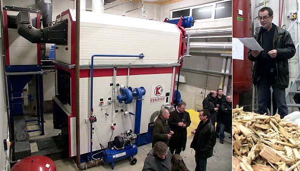 Stadtwerke liefern Nahwärme aus Hackschnitzeln Kernstück der Heizzentrale ist der 800-Kw-Kessel (l.). Rechts Werksleiter Stefan Schwarz bei Erläuterungen zur Anlage. (Fotos: Hubert Richter)