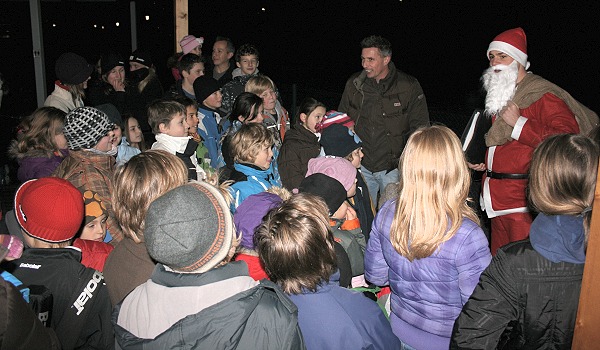 Nikolausfeier im Clubhaus (Foto: privat)(bro) (sch) Übervoll war das Clubhaus des Eberbacher Tennisclubs, als große und kleine Kinder mit ihren Eltern auf den Nikolaus warteten.Mit den Größeren, insgesamt 46 Kindern, ging es am Mittag zum Schlittschuhlaufen, während die Kleinen sich in der Halle bei Spielen vergnügten. Danach trafen sich alle bei Plätzchen, Kinderpunsch und heißen Würstchen im Clubhaus, um den Nikolaus zu erwarten. Schließlich kam er über die Platzanlage geschritten, und da alle fleißig beim Training waren, war der Nikolaus sehr zufrieden und teilte an jedes Kind einen großen Schokoladennikolaus und ein Schlüsselband aus. Zufrieden zogen Groß und Klein anschließend nach Hause.