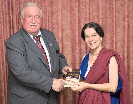 Spannende Lesung mit der Autorin Claudia Magerl Lions Präsident Schilling mit Claudia Magerl. (Foto: privat)(bro) (jk) Ein besonderes Erlebnis konnten die Lions bei ihrem offiziellen Abend im Dezember genießen. Die Erfolgsautorin Claudia Magerl gab einem zahlreichen und interessierten Publikum Leseproben aus ihren beiden Büchern „Bruderschwur“ und „Feuertod“ zum Besten.