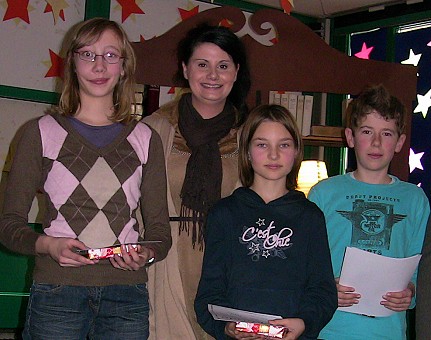Vorlesen will gelernt sein Isabell Schwab (Mitte) mit den Lesebesten (v.l.) Julia Zimmermann, Michelle Müller und Valentin Plagge. (Foto: Claudia Richter)(cr) In der Vorweihnachtszeit findet alljährlich an der Realschule in Eberbach ein Lesewettbewerb statt, der vom Börsenverein des Buchhandels und der Stiftung Lesen landesweit unterstützt wird.