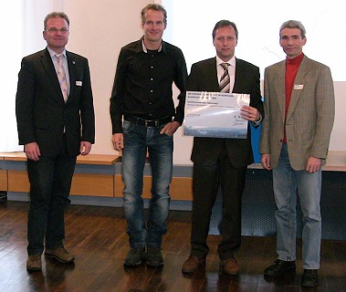 10.000 Euro für das Neckarsteig-Projekt V.l. Bürgermeister Bernhard Martin, Timo Bracht, Verbandsdirektor Ralph Schlusche und Naturpark-Geschäftsführer Manfred Robens bei der Preisverleihung für das Projekt "Neckarsteig". (Foto: Claudia Richter)(cr) Der Regionalpark Rhein-Neckar hielt heute im Eberbacher Rathaus sein drittes Regionalparkforum ab. Verschiedene Projekte zur Regionalentwicklung wurden vorgestellt. Daneben wurden die Preisträger im Wettbewerb "Landschaft in Bewegung" geehrt.