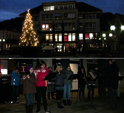 Umrahmt wird die Fensteröffnung mit musikalischen oder anderen Darbietungen verschiedener Gruppen und Vereine. Vorgestern war es die Bläserklasse der Realschule, die mit Musik zum Advent die Öffnung des 13. Fensters begleitete (unsere Bilder).