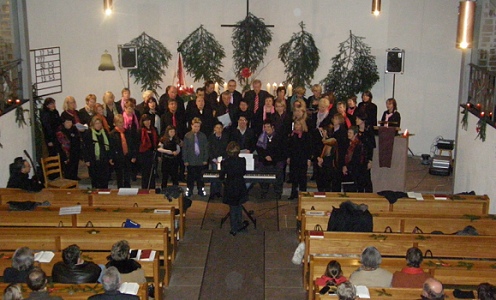 Weihnachtliche Stimmung in der Bergkirche in Rockenau (Foto: privat)(bro) (he) Der Chor "Right Now!", unter der Leitung von Karin Conrath, bereicherte am vergangenen Samstagabend den jährlichen Meditations-Gottesdienst in der Bergkirche in Rockenau.
