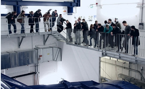 Zusammen mit dem Chemielehrer Wolfgang Hanke, der diese Führung erst ermöglichte, wurde die Klasse in der Heidelberger Kopfklinik von dem Physiker Dr. Stefan Scheloske in Empfangen genommen. Er führte sie in den HIT-Bereich und erklärte auf eine verständliche Art den Sinn und Zweck der Anlage und die Entstehung des Ionenstrahls bis zu dessen Wirkungsstelle, bevor es in den Kern der Anlage ging.