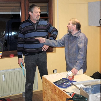 BUS - Beratung, Unterstützung, Stärkung Dass aus dem ehemaligen Sprechzimmer nun ein Schulungsraum samt Küche wird, dafür sorgen tatkräftig Harald Sillak (li.) und Rainer Heckmann. (Foto: privat)