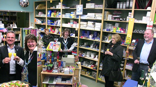 Sortiment wird um Bastelangebote erweitert Stefanie Barth-Trimarco (kleines Bild mit Bürgermeister Bernhard Martin) ist neue Inhaberin von "Papier-Baar". (Fotos: Hubert Richter)(hr) "Papier-Baar" wurde nach kurzer Umbaupause heute in der Unteren Badstraße 10-12 wiedereröffnet.