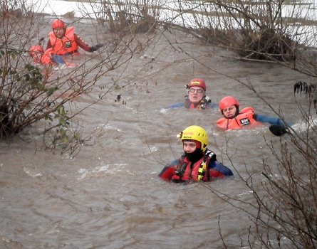 Ideale Übungsbedingungen in der Itter (Foto: privat)(bro) (ul) Nicht nur der Neckar führte Hochwasser, auch der Pegel der Itter war bis zum Wochenende kräftig angestiegen. Weil das für den vergangenen Samstag geplante Neckarschwimmen wegen des Hochwassers ausfiel, nutzte die DLRG den sonnigen Wintertag kurzerhand für eine Übung.