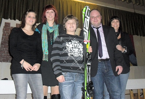Erster Höhepunkt im neuen Jahr Der erste Vorsitzende Torsten Leuwer mit dem stolzen Gewinner Tim Zimmermann und den drei "Glücksfeen". (Foto: privat)(bro) (kei) Als ersten Höhepunkt des neuen Jahres feierte die SG Rockenau traditionsgemäß ihre Winterfeier. Vor Aktiven, Freunden, Gönnern und ehrenamtlichen Helfern konnte der erste Vorsitzende Torsten Leuwer besonders Ortsvorsteher Leistner begrüßen.
