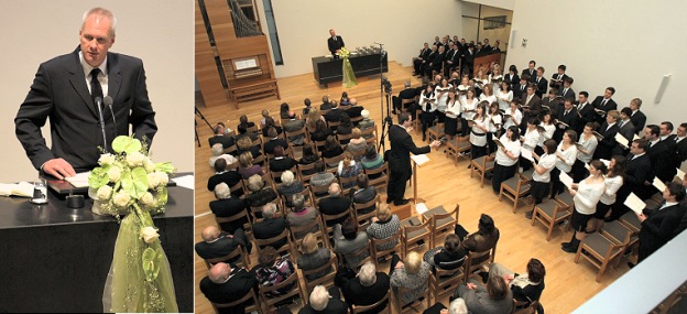 Aufruf zu guten Werken Links: Bezirksapostel Michael Ehrich während seiner Predigt. Rechts: Der Jugendchor singt während des Gottesdienstes. (Fotos: privat)(bro) (jd) Es war ein Aufruf zu guten Werken, den Bezirksapostel Michael Ehrich - als Geistlicher zuständig für Baden-Württemberg, Bayern und über 20 Länder der Erde - den neuapostolischen Christen in Eberbach überbrachte, als er am vergangenen Sonntag den Gottesdienst feierte. „Es gibt nichts Gutes, außer: Man tut es“ - dieses bekannte Kästner-Zitat stellte er als Überschrift über seine Predigt.